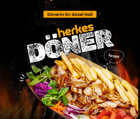 Lezzet bir tercihtir, bizce bu tercih "Herkes Döner"! Herkes Döner, tavuk dönerin en lezzetli halini herkesin ulaşabileceği bir deneyime dönüştürmek için yola çıktı. Kurulduğumuz ilk günden bu yana hedefimiz; taptaze malzemeler, özel marinasyonla hazırlanmış tavuk eti ve kendimize has soslarımızla dürüm keyfini başka bir seviyeye taşımak oldu. Dürüm deyip geçmedik. Her bir ürünümüzü özenle seçilen malzemelerle, hijyen kurallarına uygun şekilde hazırlıyor; lezzet, hız ve kaliteyi bir arada sunuyoruz. Güler yüzlü ekibimiz, hızlı servis anlayışımız ve uygun fiyatlarımızla her yaştan misafirimize keyifli bir deneyim yaşatmak bizim için bir tutku. Günlük hazırlanmış tavuk dönerlerimiz, yumuşacık lavaşlarımız, taze yeşilliklerimiz ve özel soslarımızla birleştiğinde ortaya çıkan tat, sizi tekrar tekrar buraya getiriyor. Biz işimizi seviyoruz ve her dürümde bu sevgiyi hissettirmeyi amaçlıyoruz. Çünkü biz inanıyoruz ki; Herkes acıkır, Herkes döner!